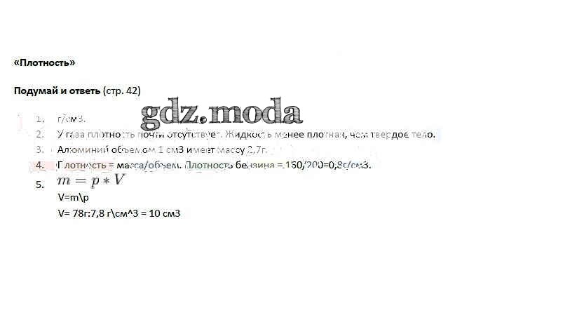 ГДЗ решение к заданию № 42 Физика. Химия 5-6 классы Гуревич Дрофа 2011 бесплатно на гдз.мода!