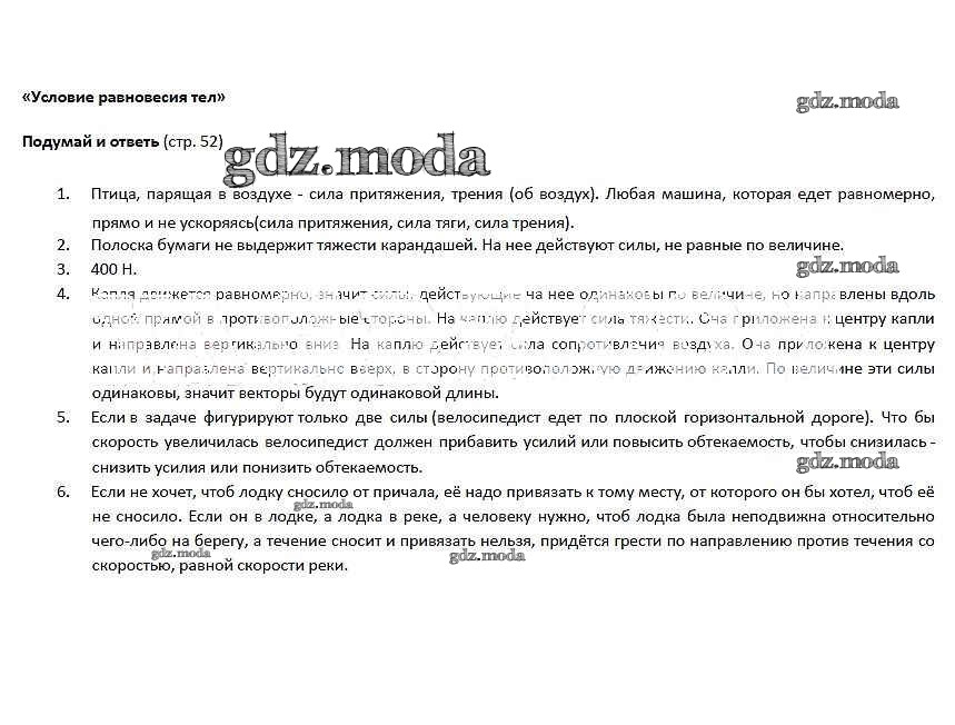 ОТВЕТ на задание № 52 Учебник по Физике 5-6 класс Гуревич