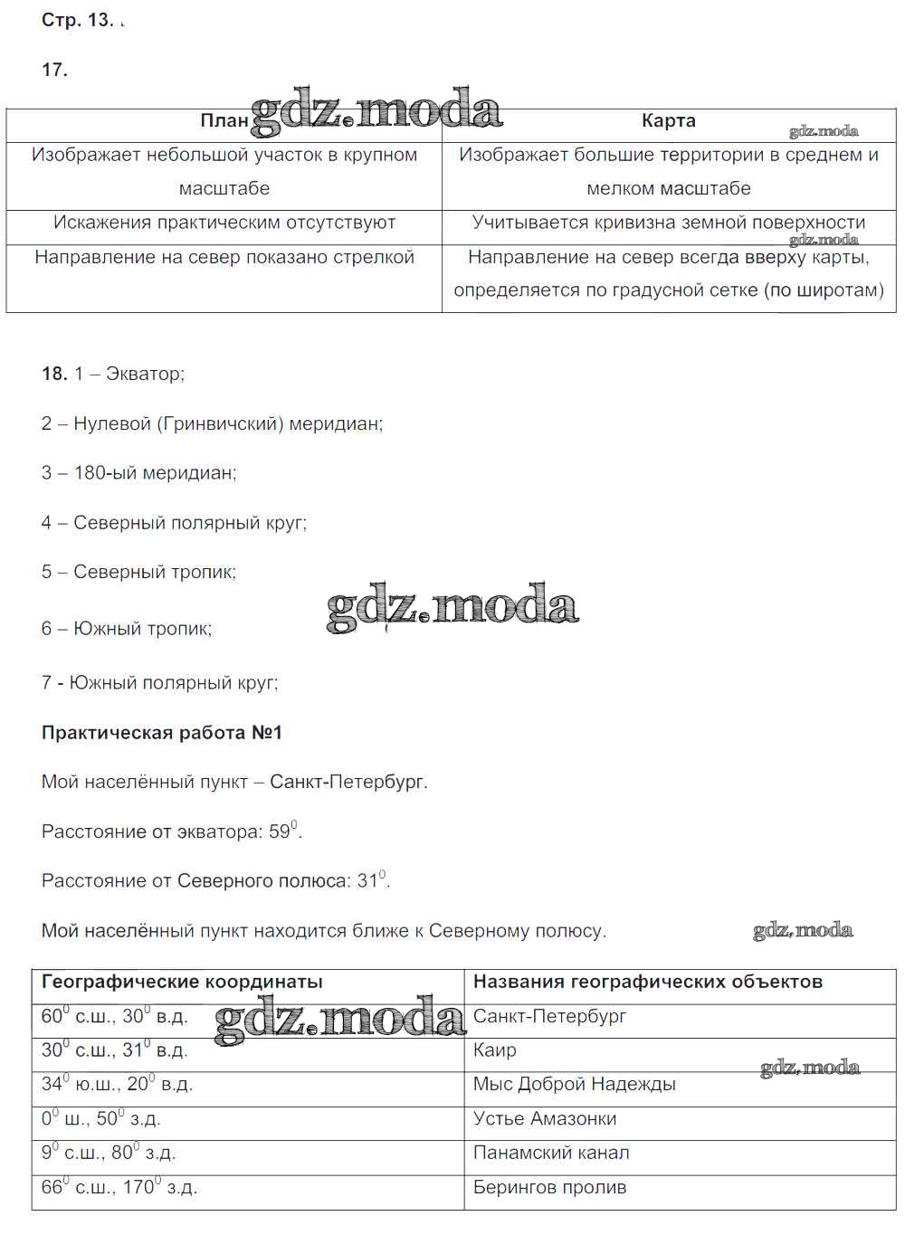 ГДЗ решение к заданию № 13 География 6 класс рабочая тетрадь (с комплектом контурных карт) Баринова И.И. Экзамен 2010 ФГОС бесплатно на гдз.мода!