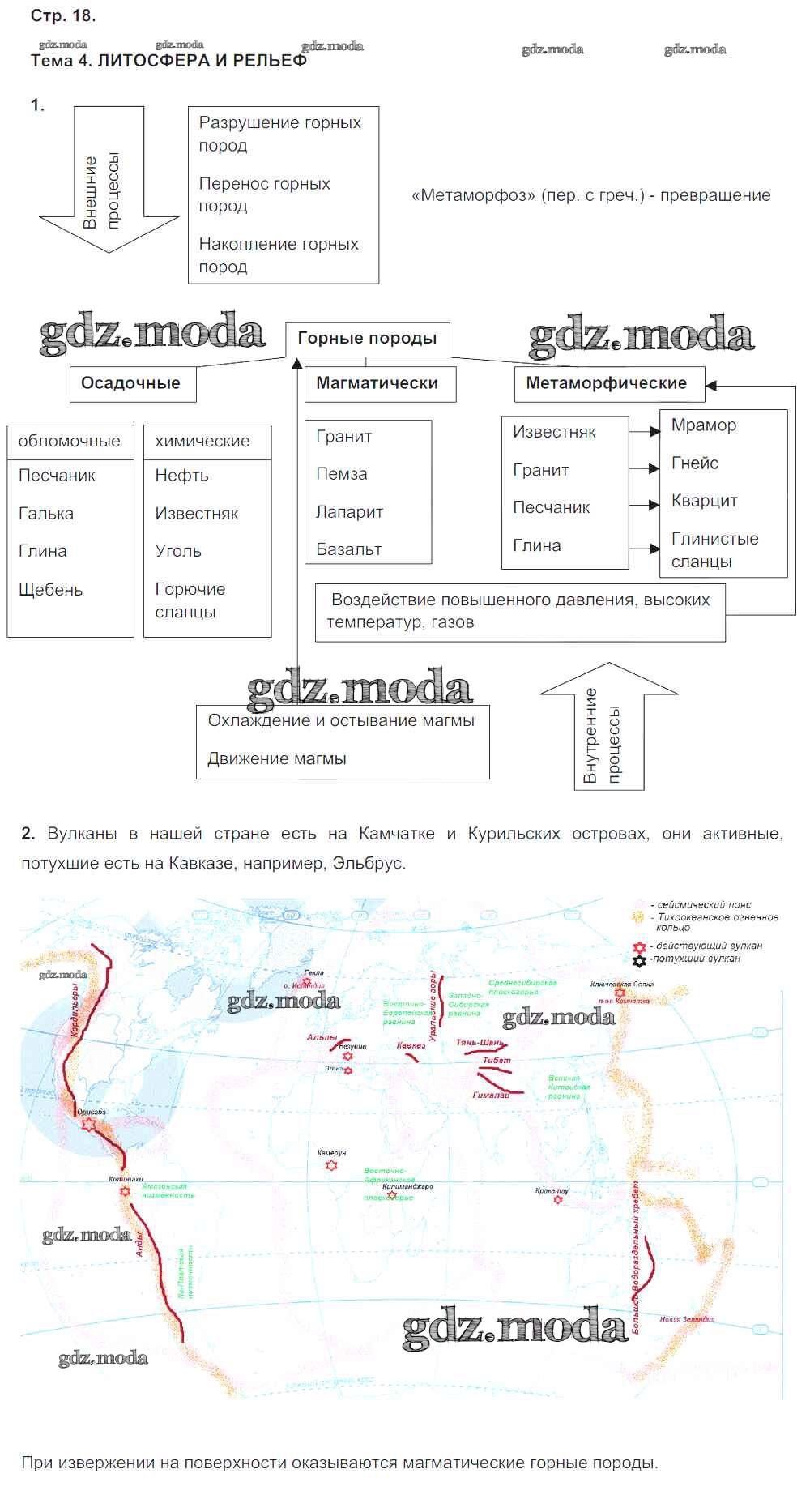 ГДЗ решение к заданию № 18 География 6 класс рабочая тетрадь (с комплектом контурных карт) Баринова И.И. Экзамен 2010 ФГОС бесплатно на гдз.мода!