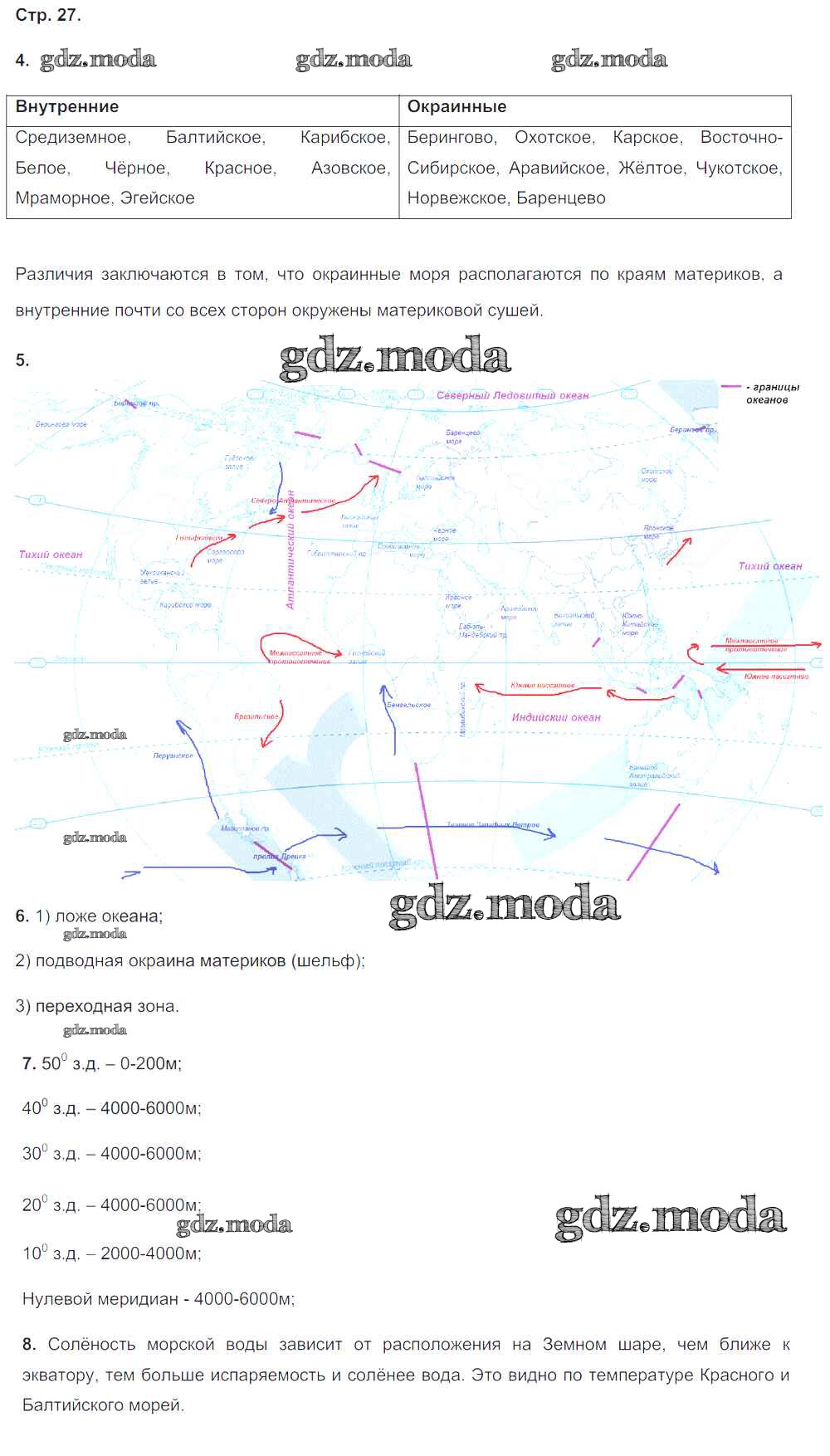 ГДЗ решение к заданию № 27 География 6 класс рабочая тетрадь (с комплектом контурных карт) Баринова И.И. Экзамен 2010 ФГОС бесплатно на гдз.мода!
