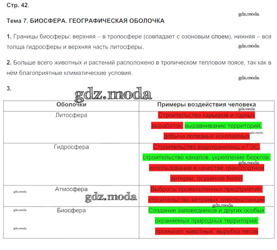 ГДЗ решение к заданию № 42 География 6 класс рабочая тетрадь (с комплектом контурных карт) Баринова И.И. Экзамен 2010 ФГОС бесплатно на гдз.мода!