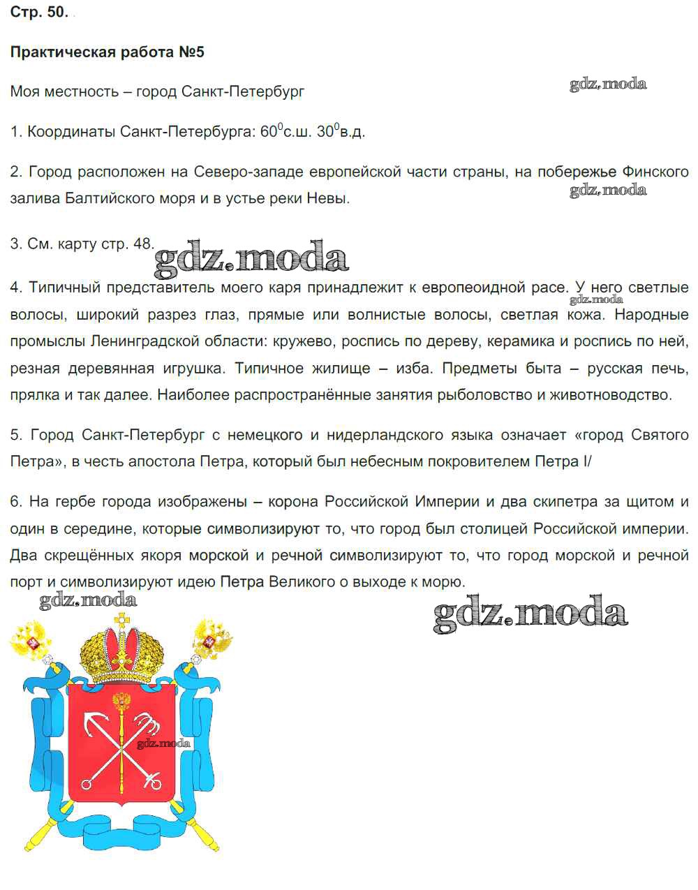 ГДЗ решение к заданию № 50 География 6 класс рабочая тетрадь (с комплектом контурных карт) Баринова И.И. Экзамен 2010 ФГОС бесплатно на гдз.мода!