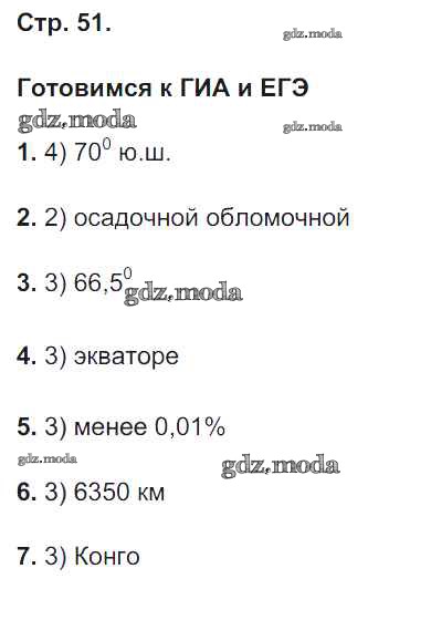 ГДЗ решение к заданию № 51 География 6 класс рабочая тетрадь (с комплектом контурных карт) Баринова И.И. Экзамен 2010 ФГОС бесплатно на гдз.мода!