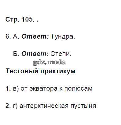 ГДЗ решение к заданию № 105 География 6 класс тетрадь-практикум Болотникова Н.В. (к уч. Домогацких) Русское слово 2017 ФГОС бесплатно на гдз.мода!