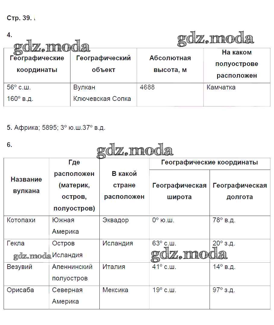 ГДЗ решение к заданию № 39 География 6 класс тетрадь-практикум Болотникова Н.В. (к уч. Домогацких) Русское слово 2017 ФГОС бесплатно на гдз.мода!