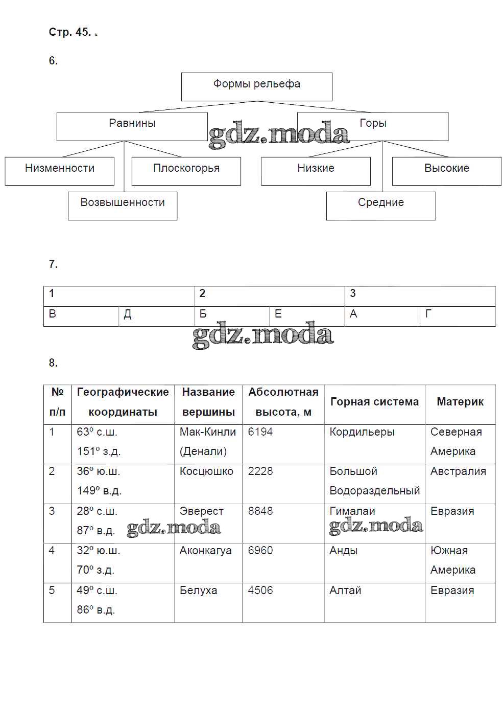 ГДЗ решение к заданию № 45 География 6 класс тетрадь-практикум Болотникова Н.В. (к уч. Домогацких) Русское слово 2017 ФГОС бесплатно на гдз.мода!