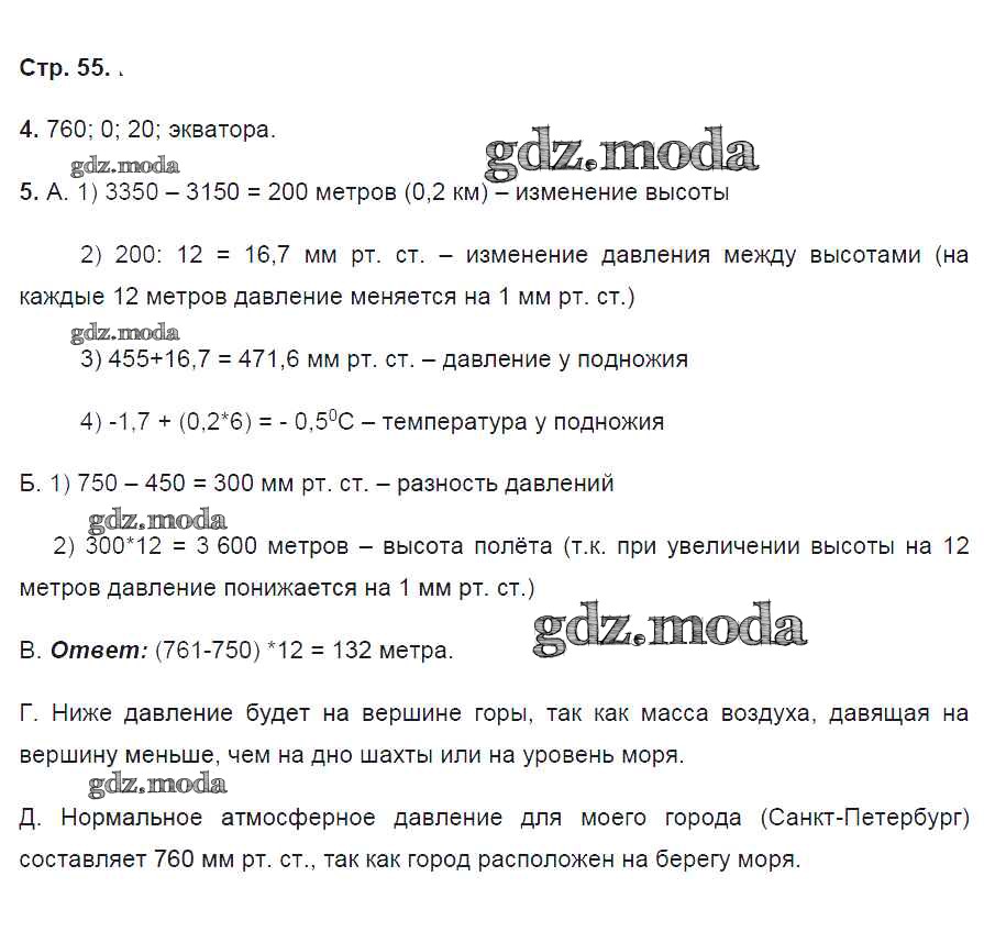ГДЗ решение к заданию № 55 География 6 класс тетрадь-практикум Болотникова Н.В. (к уч. Домогацких) Русское слово 2017 ФГОС бесплатно на гдз.мода!