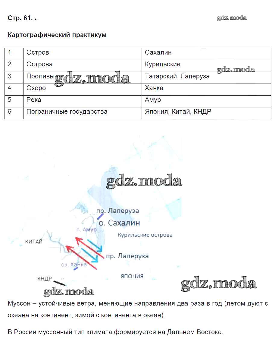 ГДЗ решение к заданию № 61 География 6 класс тетрадь-практикум Болотникова Н.В. (к уч. Домогацких) Русское слово 2017 ФГОС бесплатно на гдз.мода!