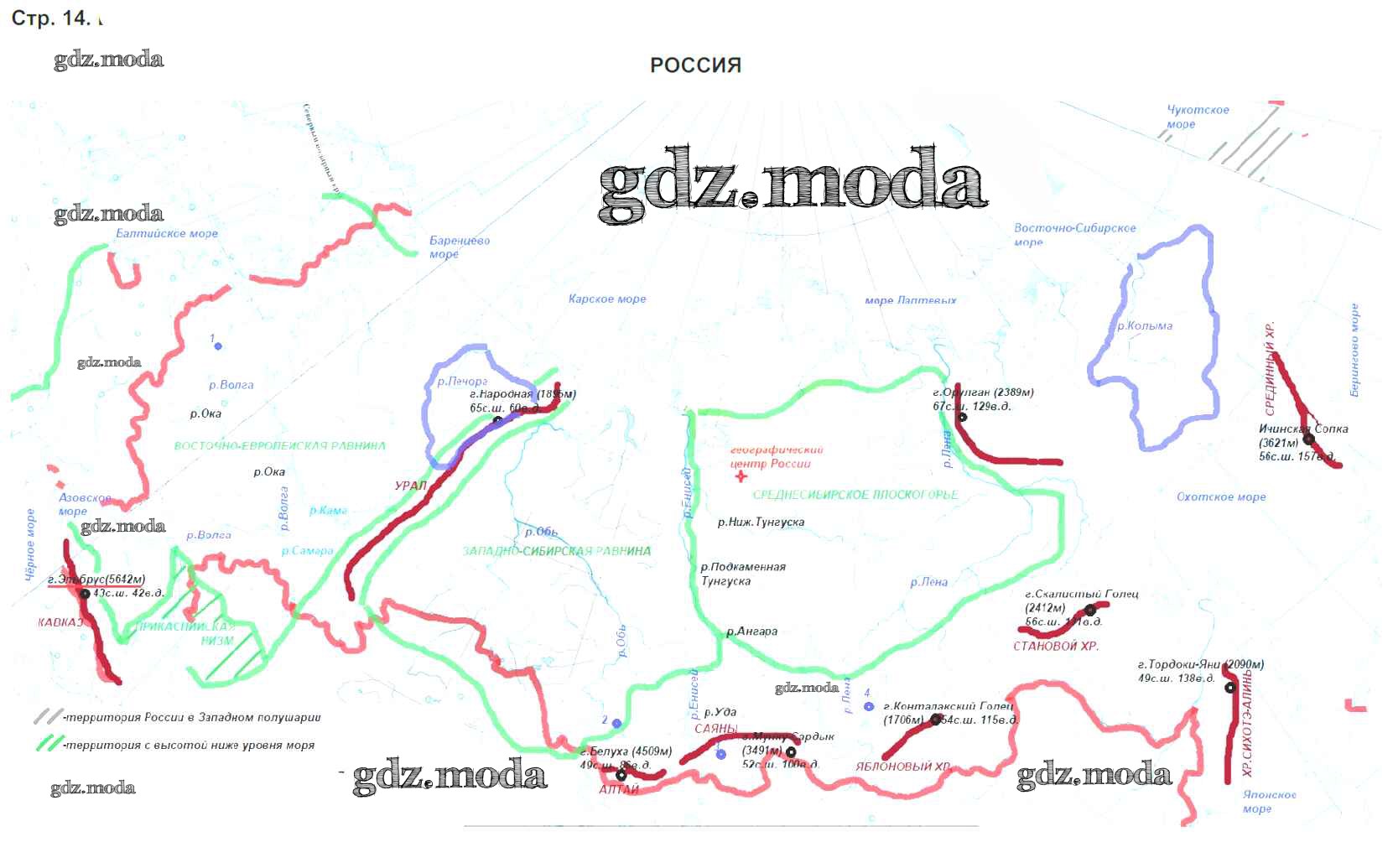 ГДЗ решение к заданию № 14 География 6 класс Контурные карты с заданиями Душина И.В. Аст/Астрель 2020 ФГОС бесплатно на гдз.мода!