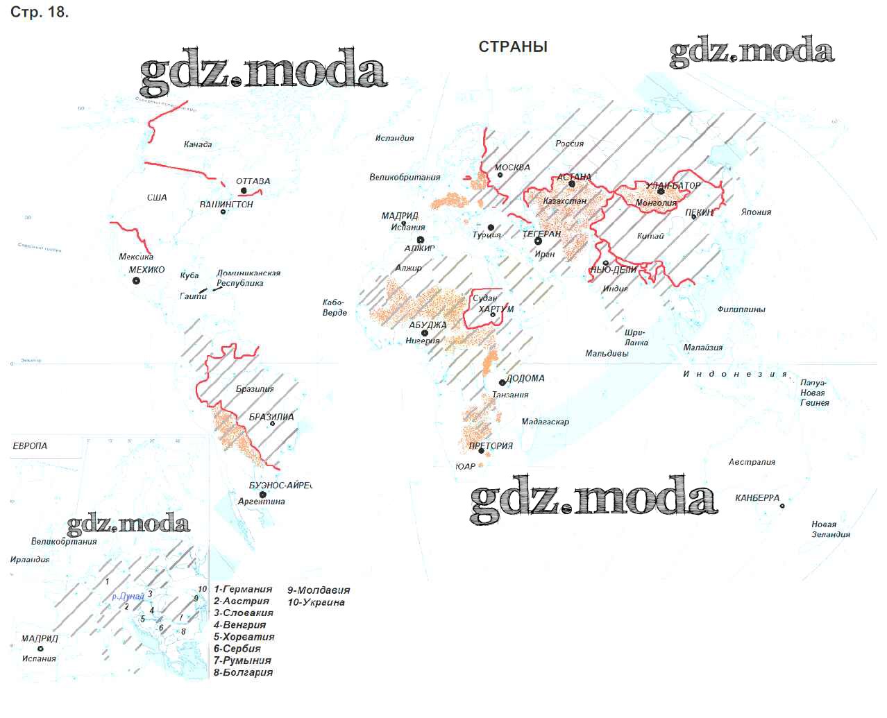 ГДЗ решение к заданию № 18 География 6 класс Контурные карты с заданиями Душина И.В. Аст/Астрель 2020 ФГОС бесплатно на гдз.мода!