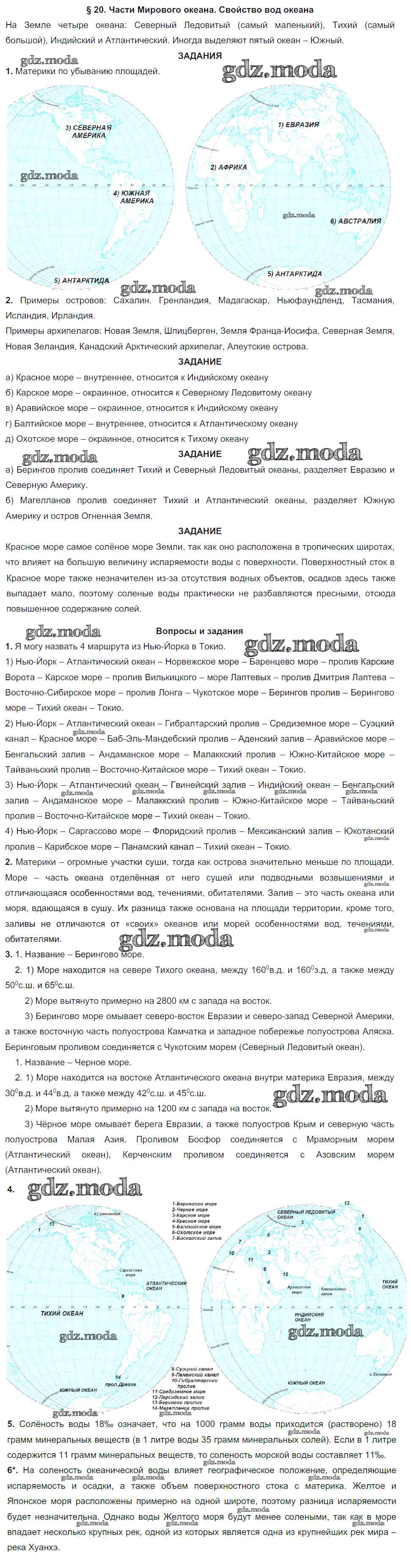 ОТВЕТ на задание № §20. Части Мирового океана. Свойство вод океана Учебник по Географии 6 класс Герасимова Вертикаль