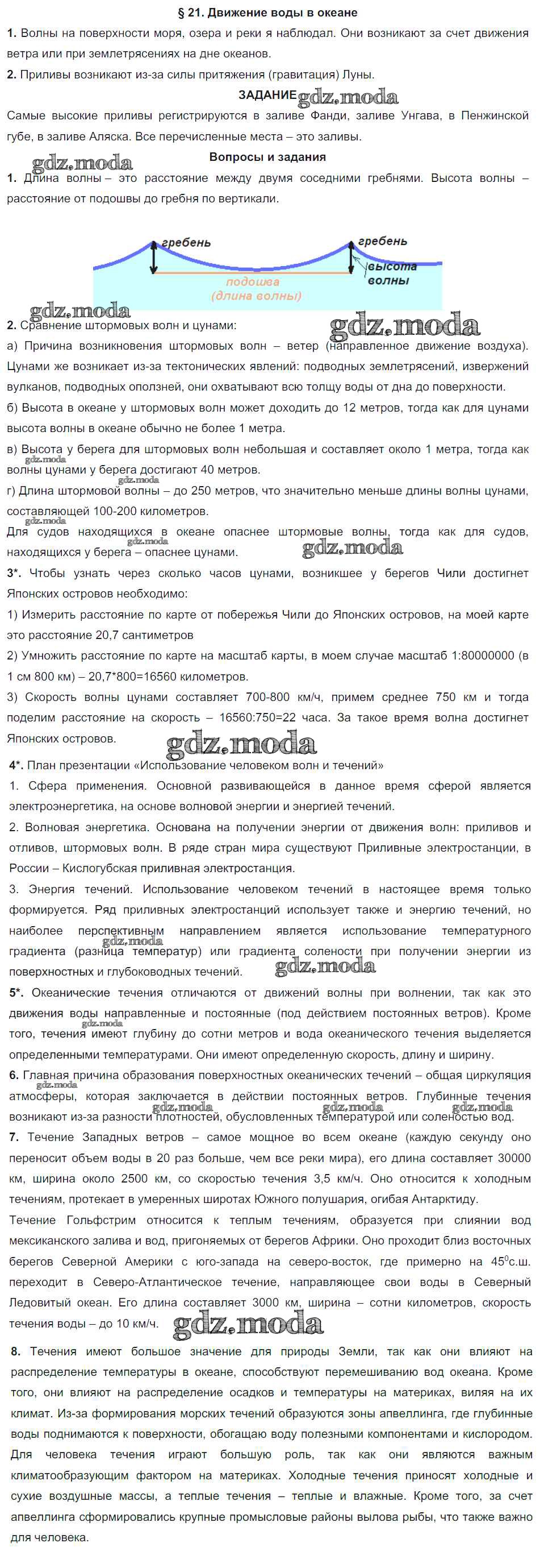 ГДЗ решение к заданию № §21. Движение воды в океане География. Начальный курс 6 класс Герасимова Т.В. Дрофа 2019 ФГОС бесплатно на гдз.мода!
