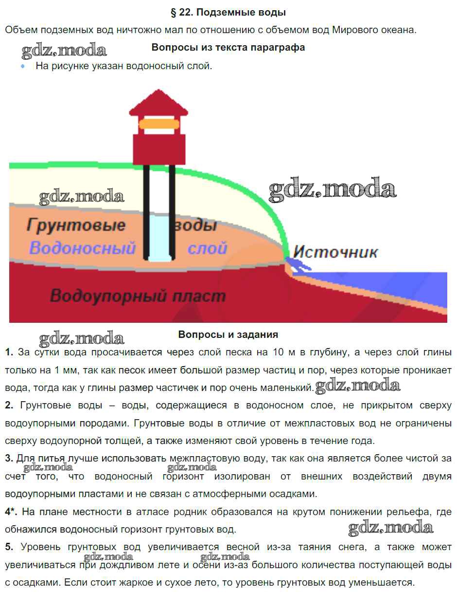 ГДЗ решение к заданию № §22. Подземные воды География. Начальный курс 6 класс Герасимова Т.В. Дрофа 2019 ФГОС бесплатно на гдз.мода!