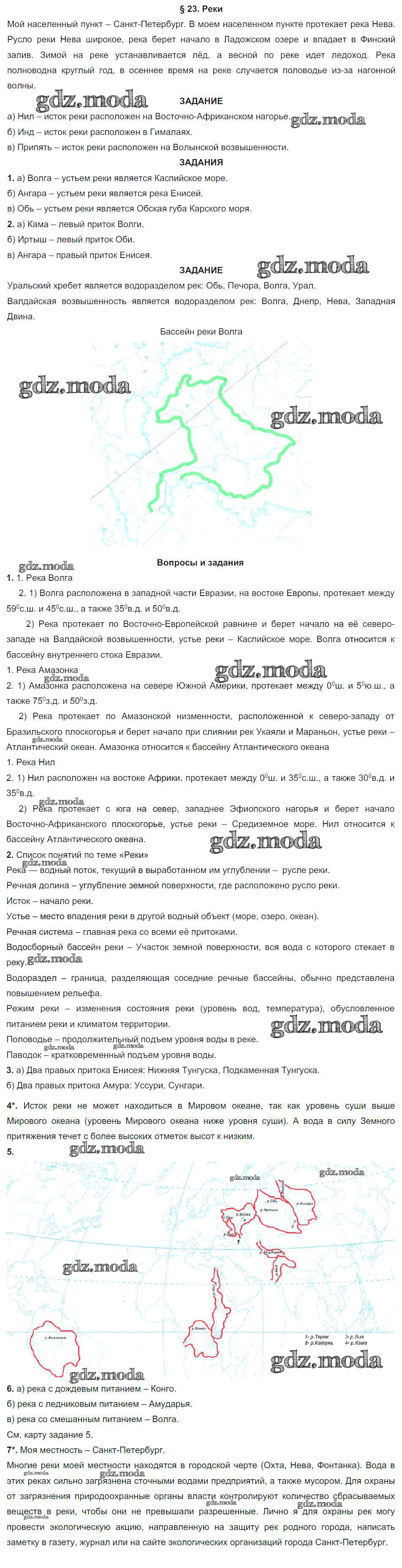 ГДЗ решение к заданию № §23. Реки География. Начальный курс 6 класс Герасимова Т.В. Дрофа 2019 ФГОС бесплатно на гдз.мода!