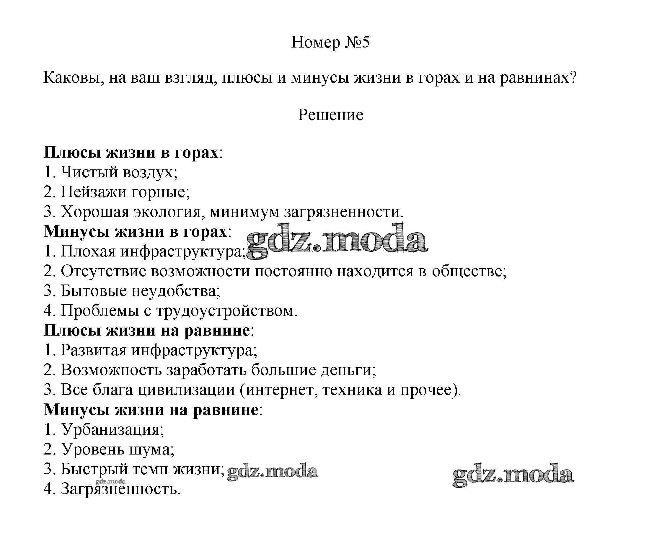 ГДЗ решение к заданию № 5 География 5-6 класс Климанова О.А. Дрофа 2017 ФГОС бесплатно на гдз.мода!