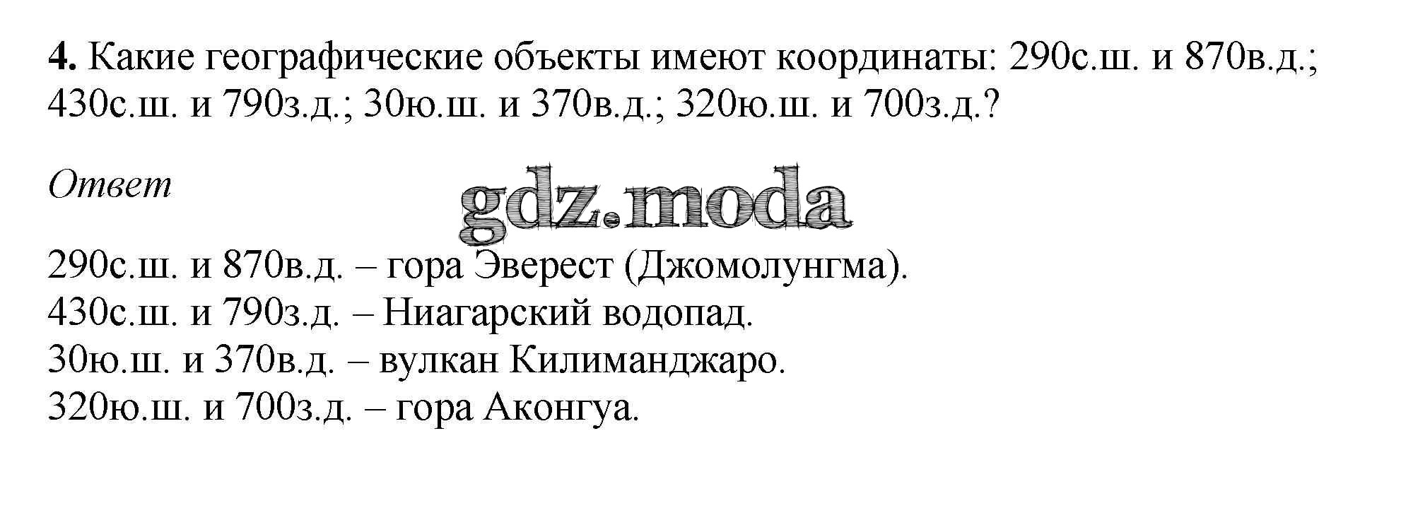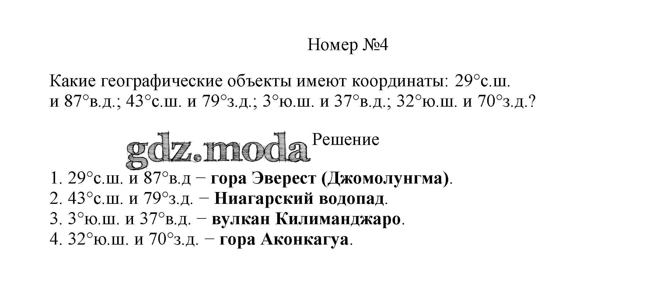 ГДЗ решение к заданию № 4 География 5-6 класс Климанова О.А. Дрофа 2017 ФГОС бесплатно на гдз.мода!