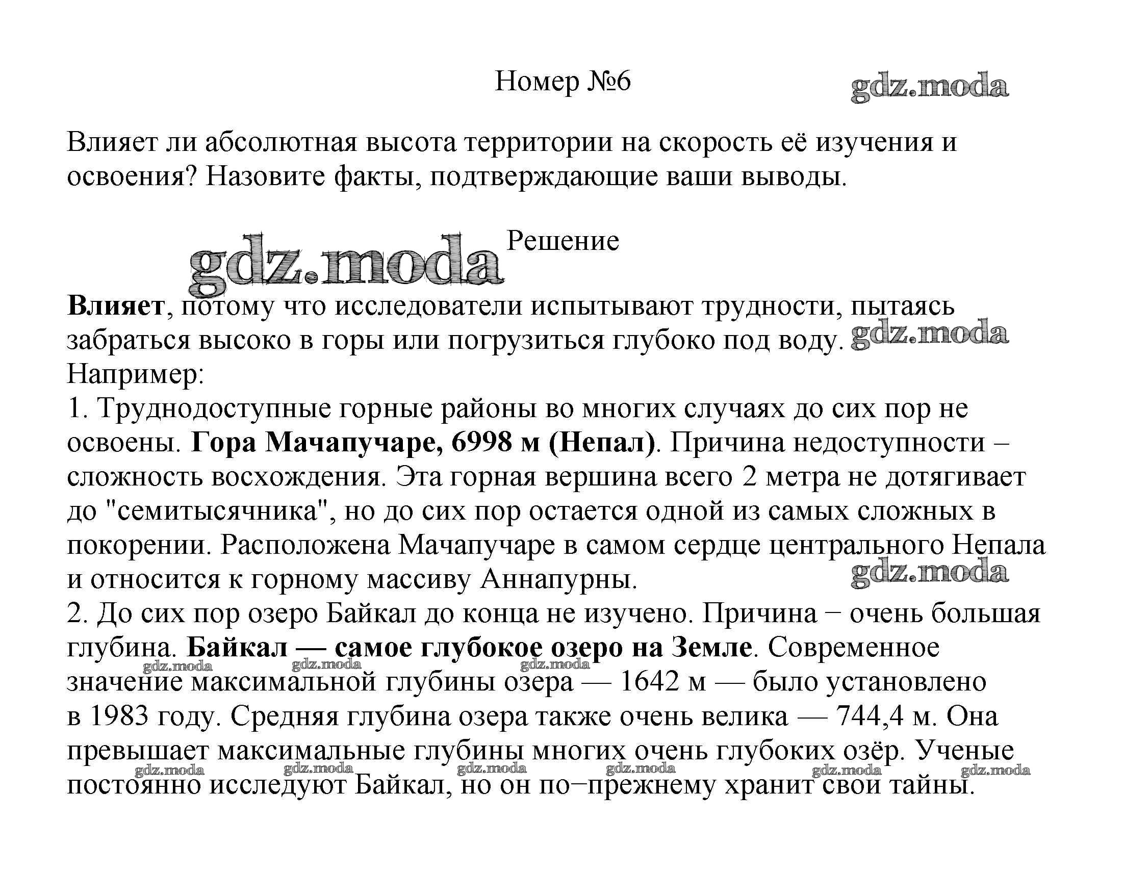 ОТВЕТ на задание № 6 Учебник по Географии 5-6 класс Климанова Вертикаль