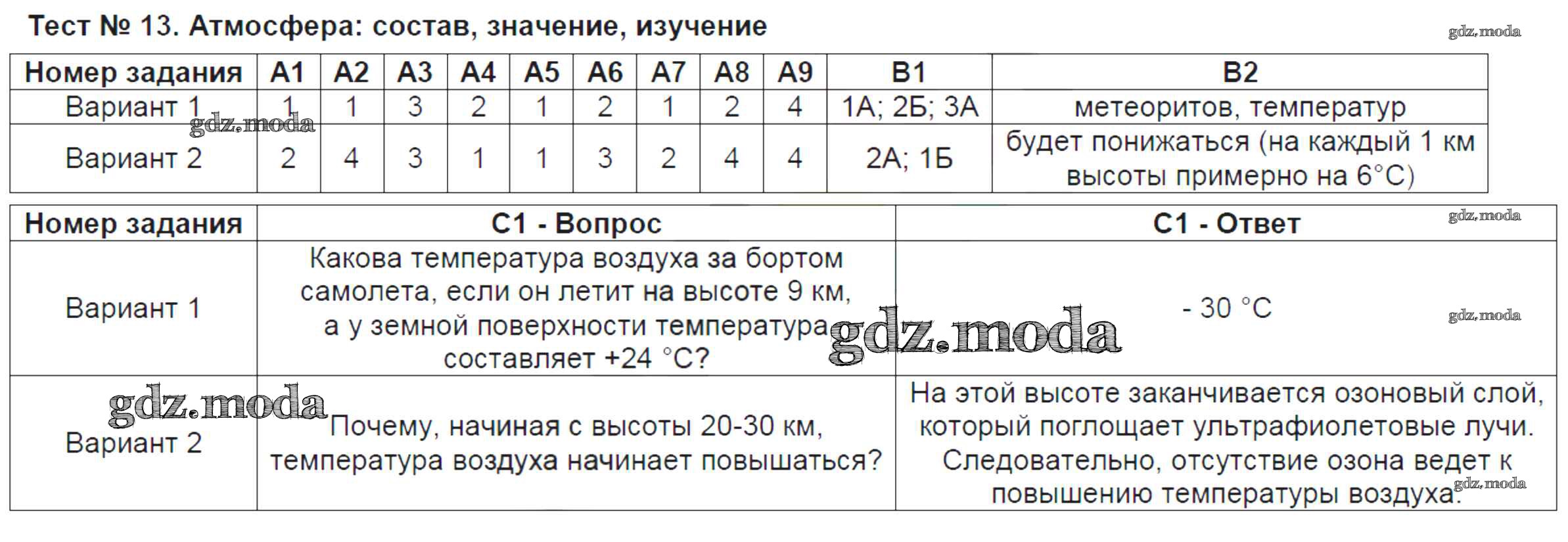 ГДЗ решение к заданию № Тест-13. Атмосфера - состав, значение, изучение География 6 класс контрольно-измерительные материалы Жижина Е.А. ВАКО 2018 ФГОС бесплатно на гдз.мода!