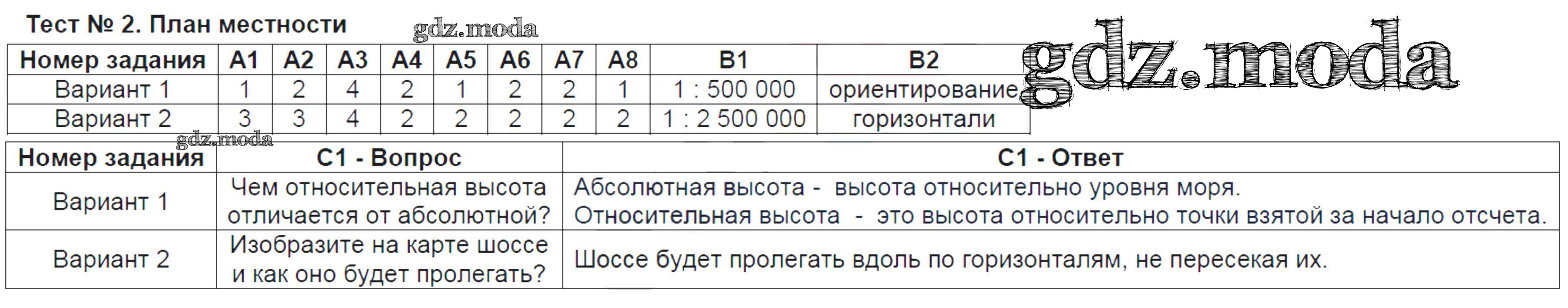 ГДЗ решение к заданию № Тест-2. План местности География 6 класс контрольно-измерительные материалы Жижина Е.А. ВАКО 2018 ФГОС бесплатно на гдз.мода!