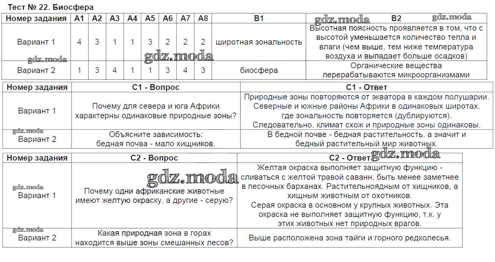 ГДЗ решение к заданию № Тест-22. Биосфера География 6 класс контрольно-измерительные материалы Жижина Е.А. ВАКО 2018 ФГОС бесплатно на гдз.мода!
