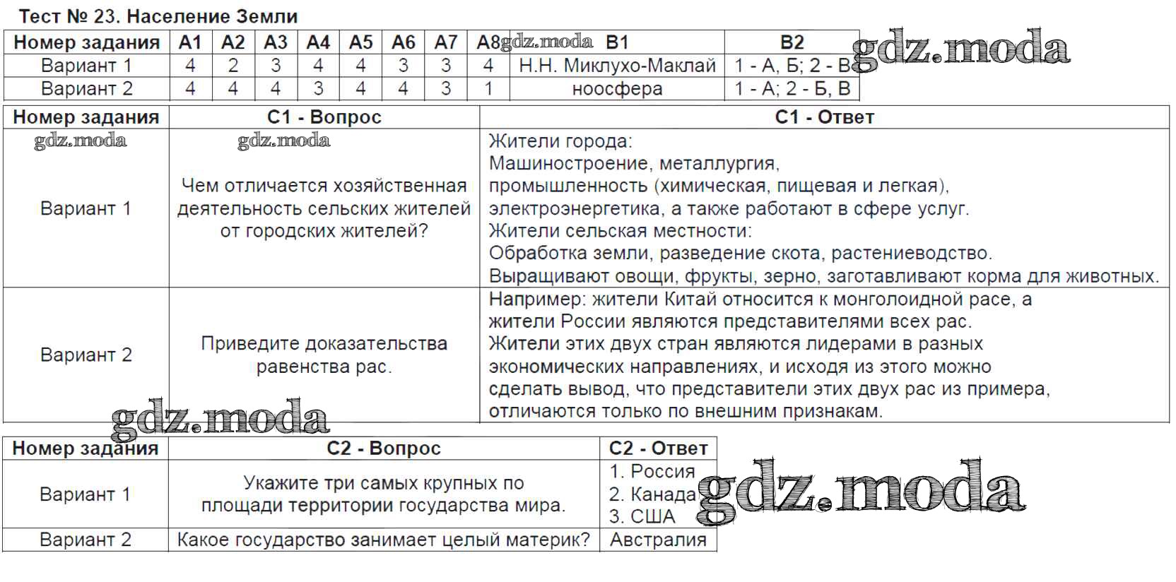 ГДЗ решение к заданию № Тест-23. Население Земли География 6 класс контрольно-измерительные материалы Жижина Е.А. ВАКО 2018 ФГОС бесплатно на гдз.мода!