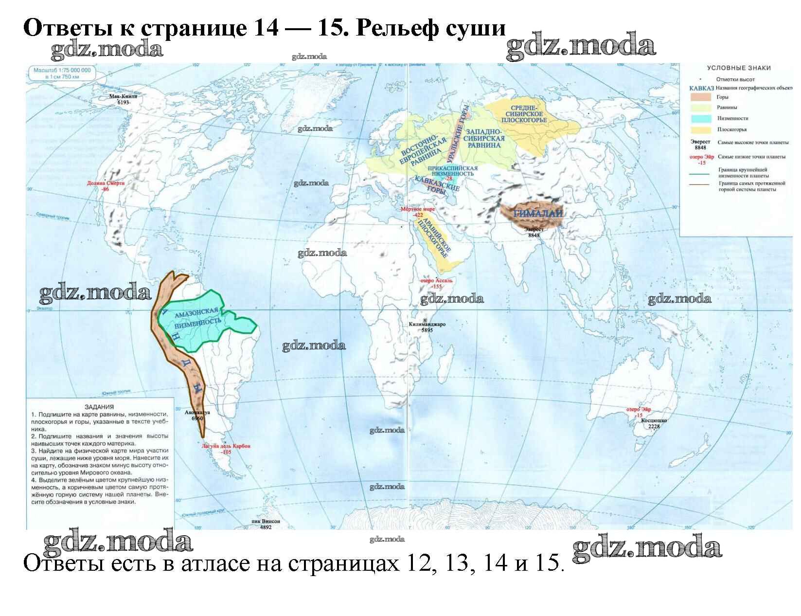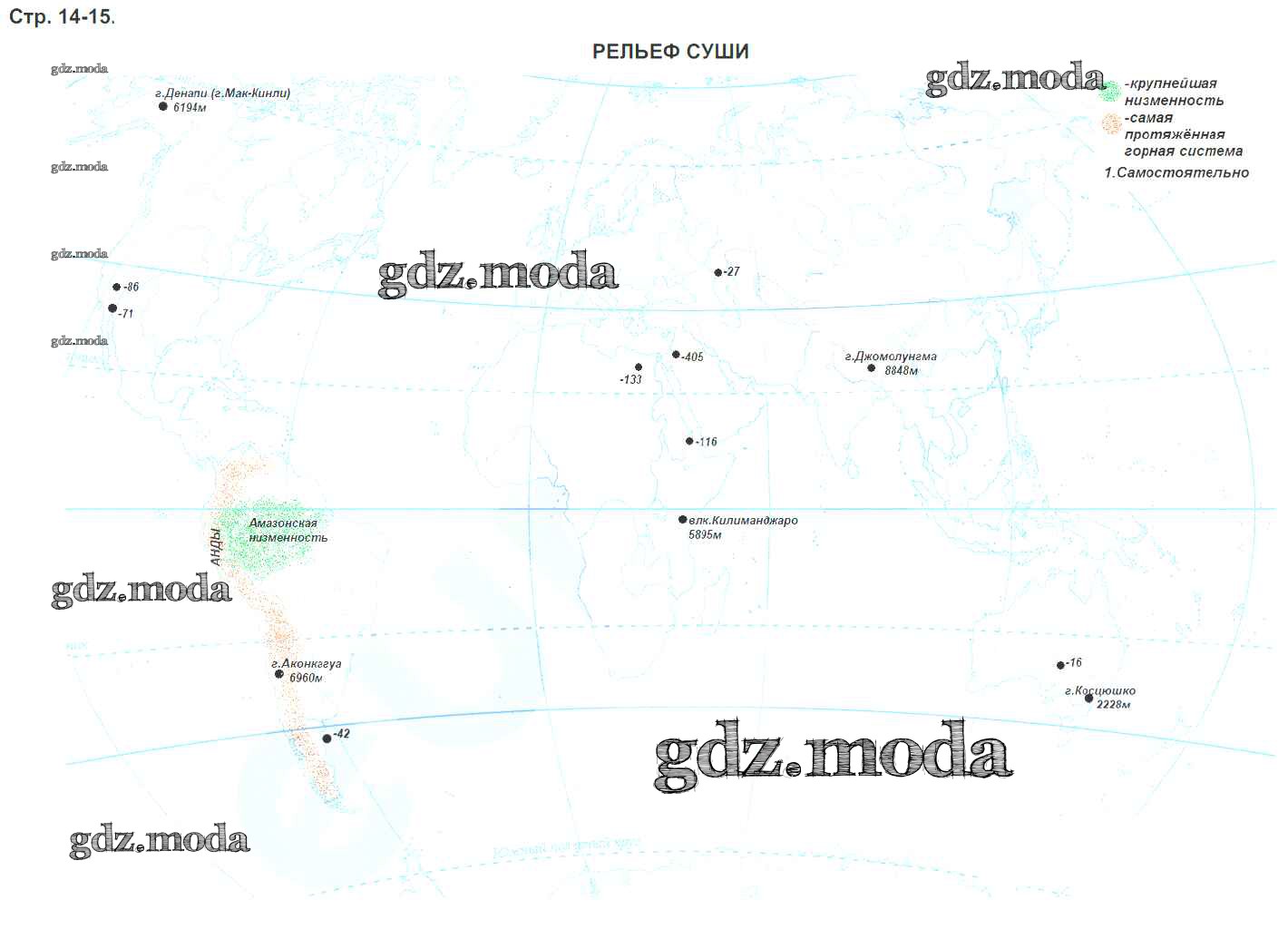 ОТВЕТ на задание № стр.14-15 Контурные карты по Географии 6 класс Курчина