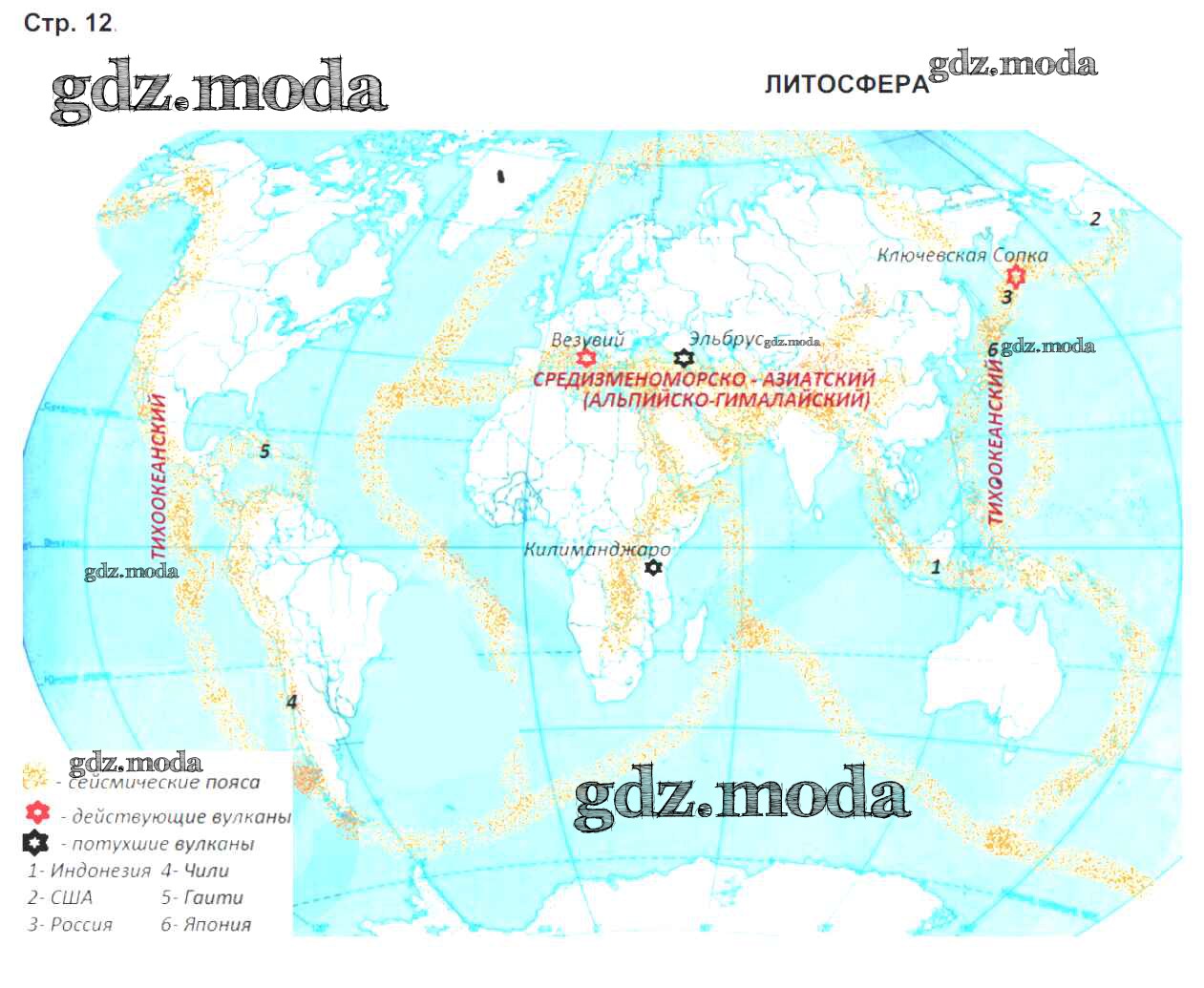 ГДЗ решение к заданию № стр.12 География 6 класс контурные карты Курбский Н.А. Дрофа 2019 Часть 1, Часть 2 ФГОС бесплатно на гдз.мода!