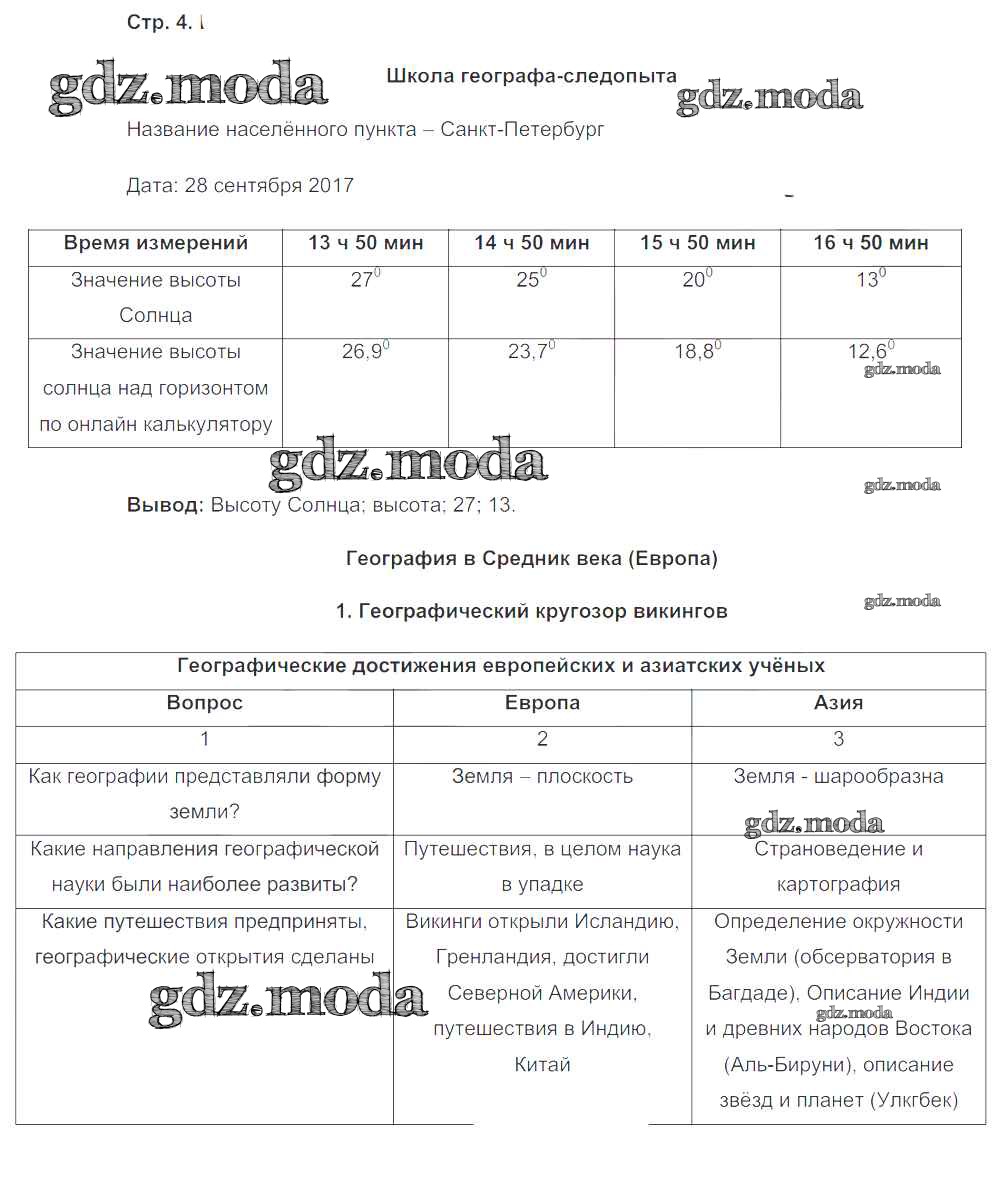 ГДЗ решение к заданию № 4 География 6 класс Дневник географа-следопыта (рабочая тетрадь) Летягин А.А. Вентана-граф 2020 ФГОС бесплатно на гдз.мода!