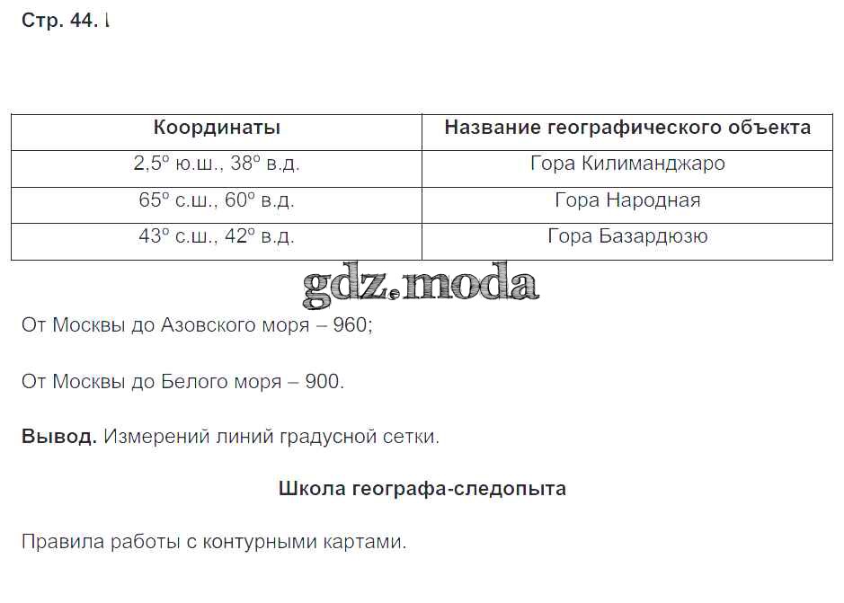 ГДЗ решение к заданию № 44 География 6 класс Дневник географа-следопыта (рабочая тетрадь) Летягин А.А. Вентана-граф 2020 ФГОС бесплатно на гдз.мода!