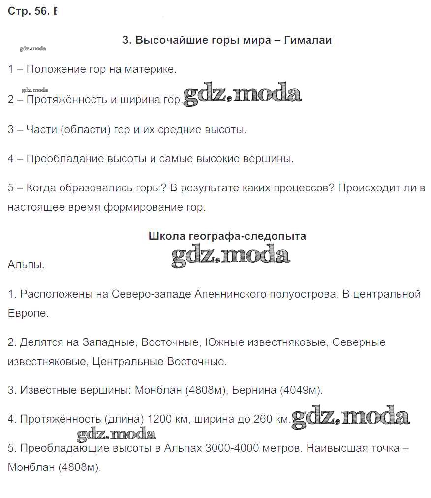 ГДЗ решение к заданию № 56 География 6 класс Дневник географа-следопыта (рабочая тетрадь) Летягин А.А. Вентана-граф 2020 ФГОС бесплатно на гдз.мода!