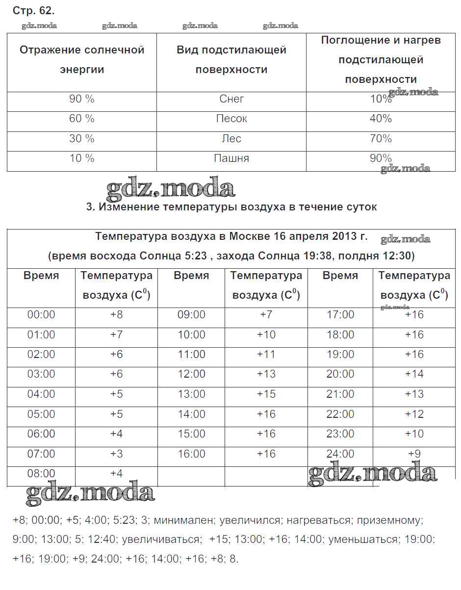 ГДЗ решение к заданию № 62 География 6 класс Дневник географа-следопыта (рабочая тетрадь) Летягин А.А. Вентана-граф 2020 ФГОС бесплатно на гдз.мода!