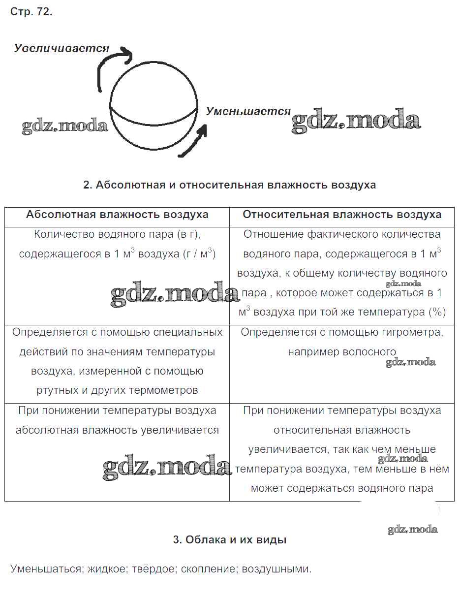 ГДЗ решение к заданию № 72 География 6 класс Дневник географа-следопыта (рабочая тетрадь) Летягин А.А. Вентана-граф 2020 ФГОС бесплатно на гдз.мода!