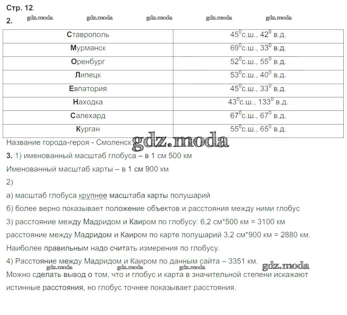 ГДЗ решение к заданию № 12 География 6 класс Тетрадь для контрольных и проверочных работ Летягин А.А. Вентана-граф 2018 ФГОС бесплатно на гдз.мода!