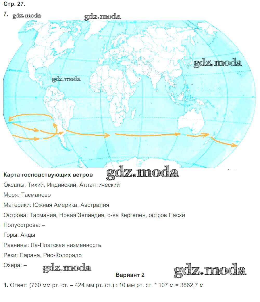 ГДЗ решение к заданию № 27 География 6 класс Тетрадь для контрольных и проверочных работ Летягин А.А. Вентана-граф 2018 ФГОС бесплатно на гдз.мода!