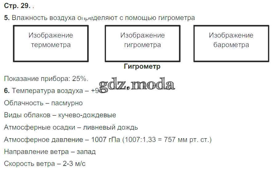 ГДЗ решение к заданию № 29 География 6 класс Тетрадь для контрольных и проверочных работ Летягин А.А. Вентана-граф 2018 ФГОС бесплатно на гдз.мода!