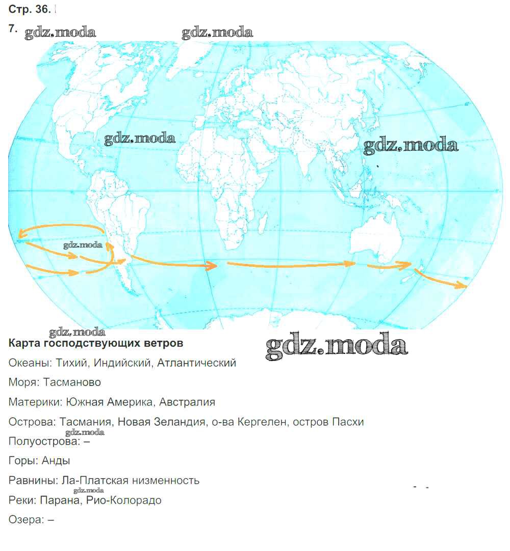 ГДЗ решение к заданию № 36 География 6 класс Тетрадь для контрольных и проверочных работ Летягин А.А. Вентана-граф 2018 ФГОС бесплатно на гдз.мода!