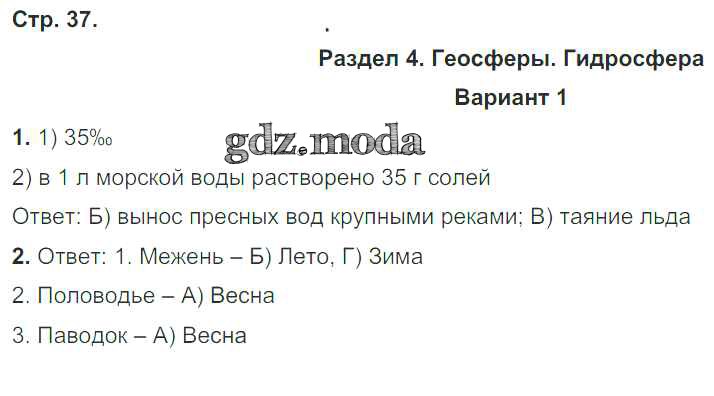 ГДЗ решение к заданию № 37 География 6 класс Тетрадь для контрольных и проверочных работ Летягин А.А. Вентана-граф 2018 ФГОС бесплатно на гдз.мода!