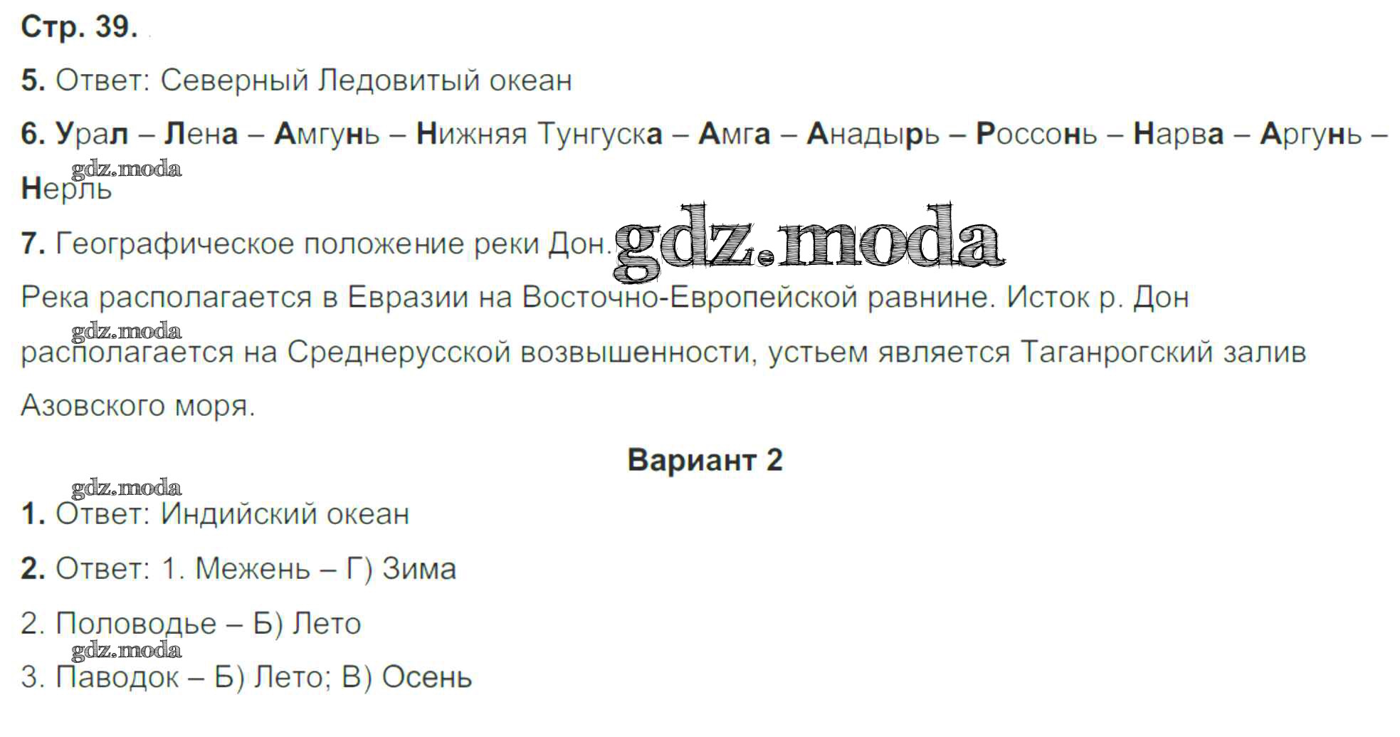 ГДЗ решение к заданию № 39 География 6 класс Тетрадь для контрольных и проверочных работ Летягин А.А. Вентана-граф 2018 ФГОС бесплатно на гдз.мода!