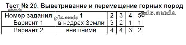 ГДЗ решение к заданию № Тест-. Выветривание и перемещение горных пород География 6 класс Тесты Пятунина О.А. (к уч. Летягина) Экзамен 2017 ФГОС бесплатно на гдз.мода!