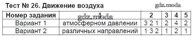ГДЗ решение к заданию № Тест-26. Движение воздуха География 6 класс Тесты Пятунина О.А. (к уч. Летягина) Экзамен 2017 ФГОС бесплатно на гдз.мода!