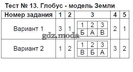 ОТВЕТ на задание № Тест-13. Глобус - модель Земли Тесты по Географии 6 класс Пятунина УМК