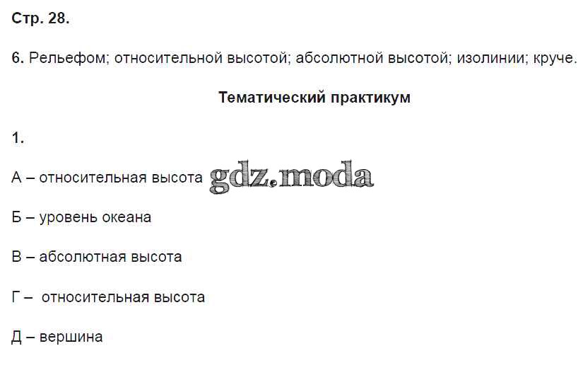 ГДЗ решение к заданию № 28 География 6 класс Рабочая тетрадь Домогацких Е.М. (к уч. Домогацких) Русское слово 2019 ФГОС бесплатно на гдз.мода!