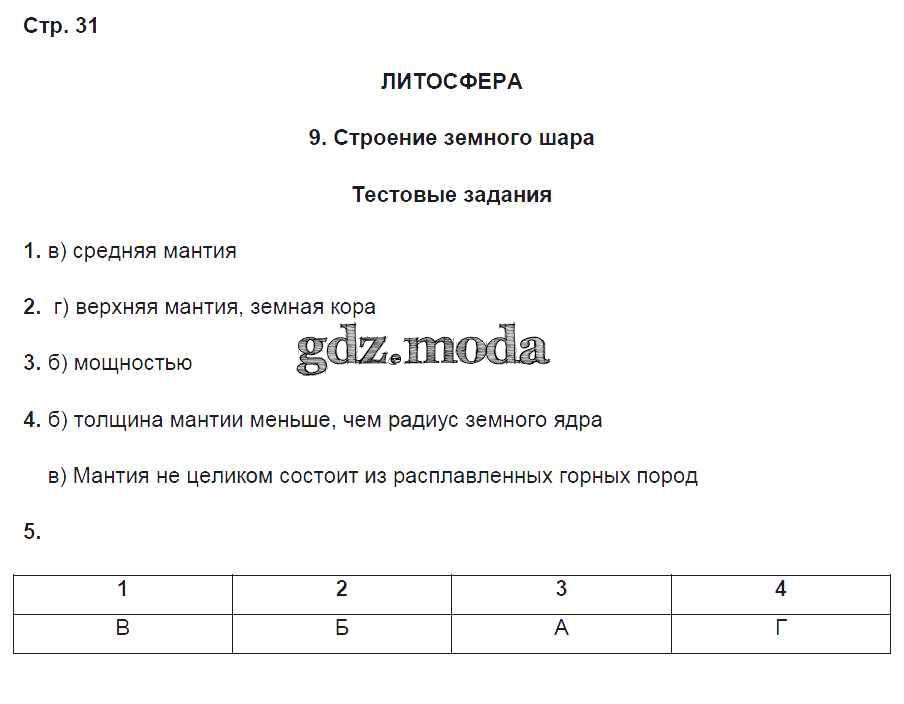 ГДЗ решение к заданию № 31 География 6 класс Рабочая тетрадь Домогацких Е.М. (к уч. Домогацких) Русское слово 2019 ФГОС бесплатно на гдз.мода!