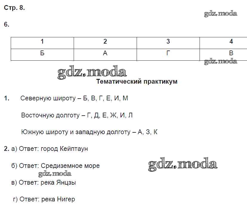 ГДЗ решение к заданию № 8 География 6 класс Рабочая тетрадь Домогацких Е.М. (к уч. Домогацких) Русское слово 2019 ФГОС бесплатно на гдз.мода!