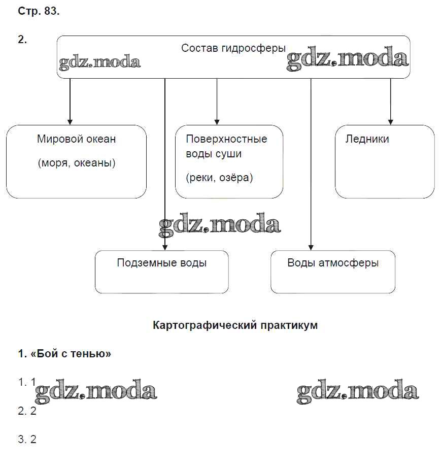 ГДЗ решение к заданию № 83 География 6 класс Рабочая тетрадь Домогацких Е.М. (к уч. Домогацких) Русское слово 2019 ФГОС бесплатно на гдз.мода!