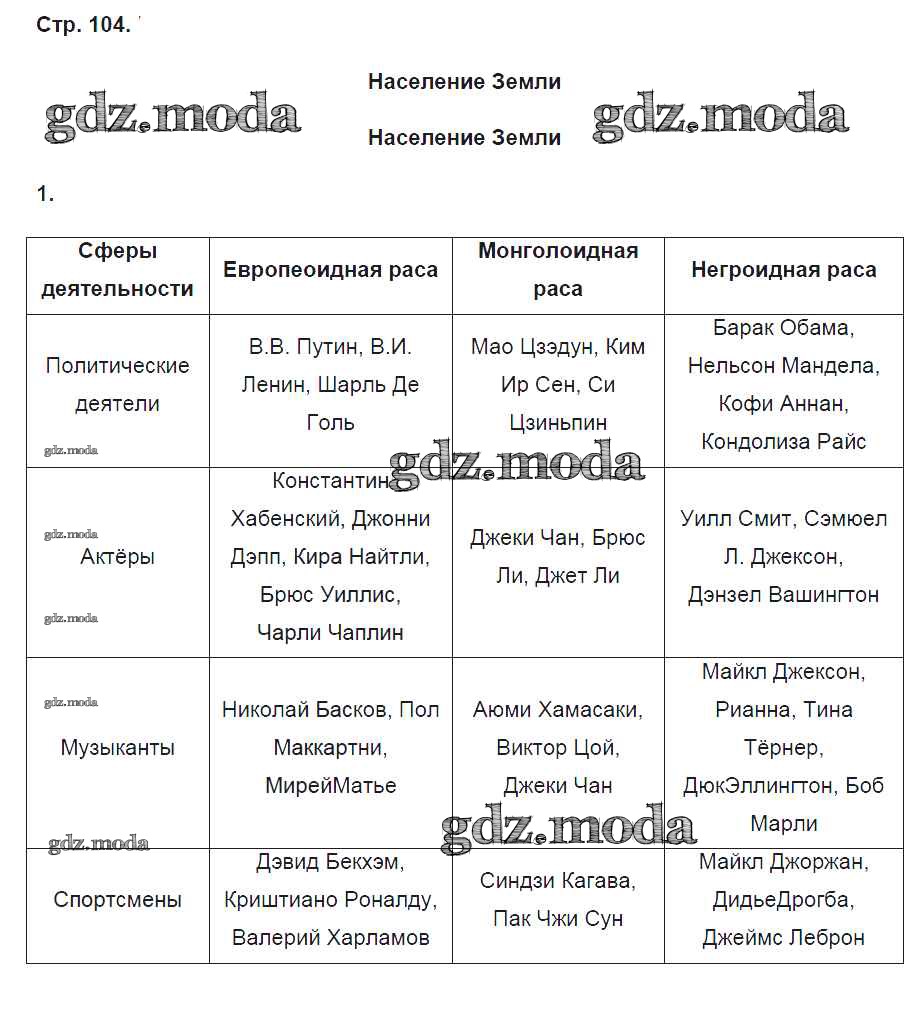 ГДЗ решение к заданию № 104 География 6 класс рабочая тетрадь Карташева Т.А. (к уч. Герасимовой) Дрофа 2020 ФГОС бесплатно на гдз.мода!