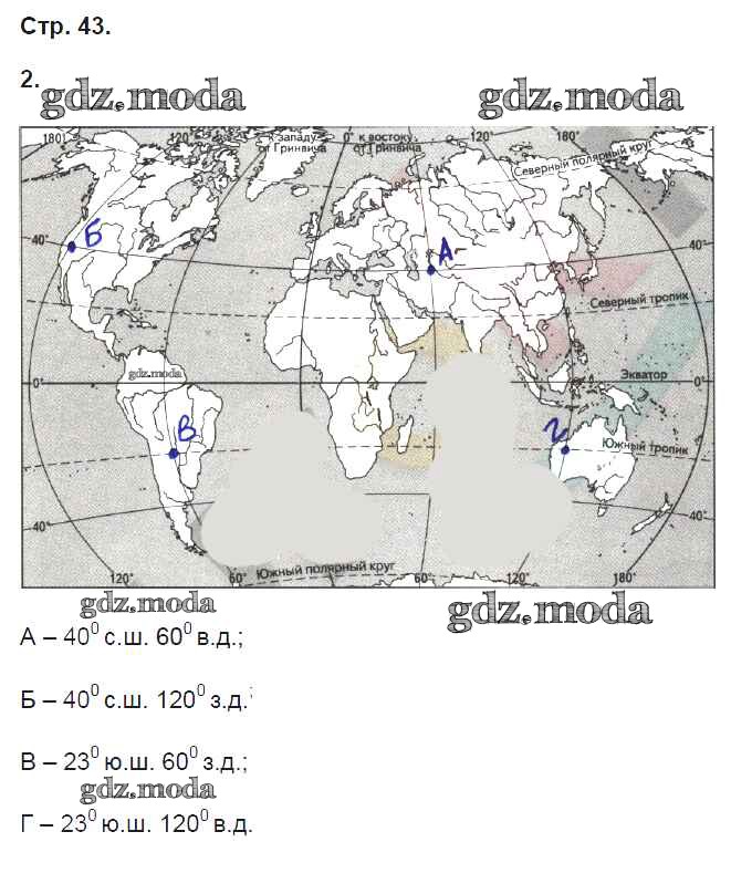 ГДЗ решение к заданию № 43 География 6 класс рабочая тетрадь Карташева Т.А. (к уч. Герасимовой) Дрофа 2020 ФГОС бесплатно на гдз.мода!