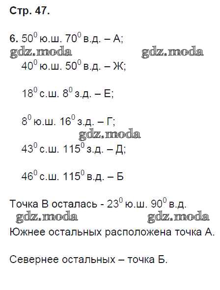ГДЗ решение к заданию № 47 География 6 класс рабочая тетрадь Карташева Т.А. (к уч. Герасимовой) Дрофа 2020 ФГОС бесплатно на гдз.мода!