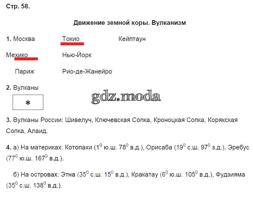 ГДЗ решение к заданию № 58 География 6 класс рабочая тетрадь Карташева Т.А. (к уч. Герасимовой) Дрофа 2020 ФГОС бесплатно на гдз.мода!